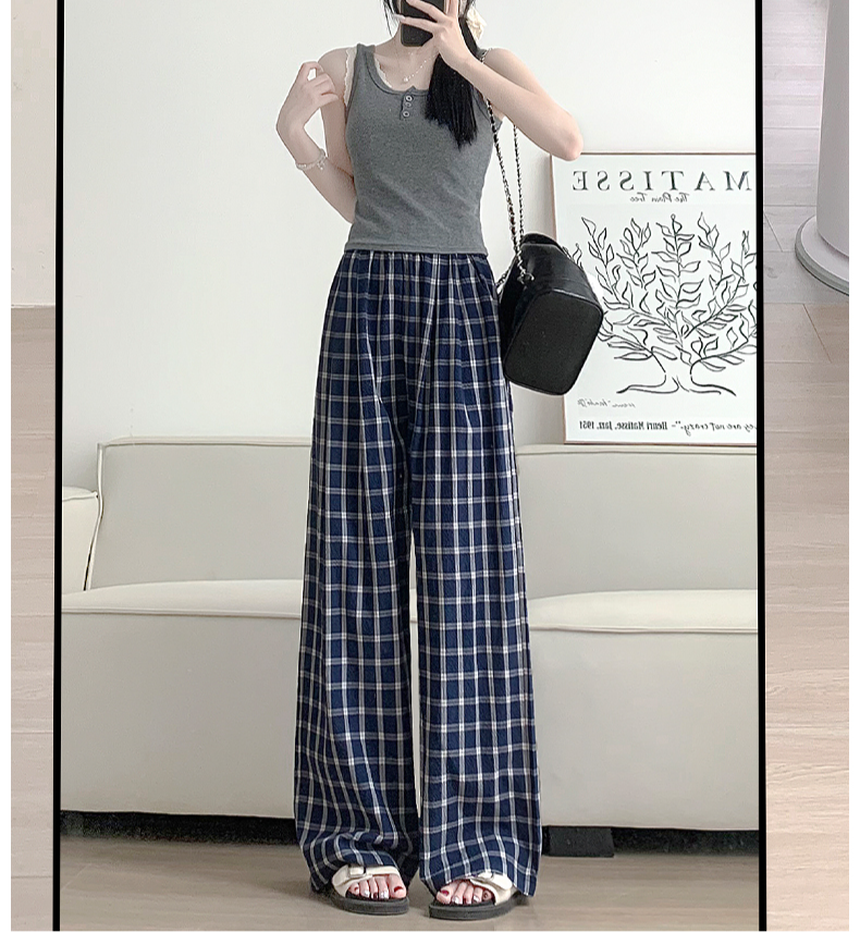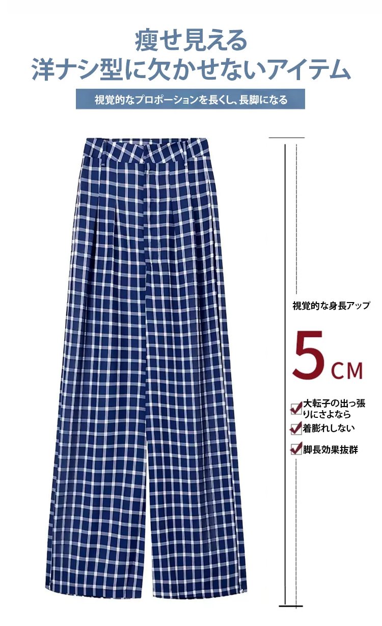 ハイウエストラフ感チェック柄ワイドパンツ